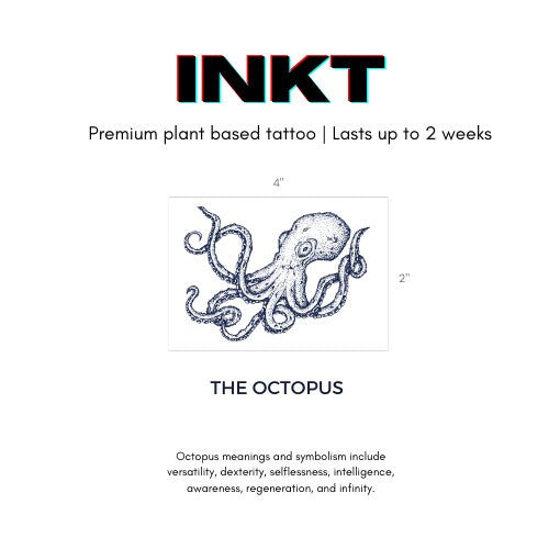 Octopus Tattoo Semi Permanent Temporary Tattoo Ocean Tattoo Minimalist Tattoo Plant based Tattoo 2 week Tattoo Festival Tattoo Realistic Art